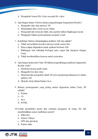 8. Apa fungsi utama dari Unity 3D dalam pengembangan aplikasi Augmented