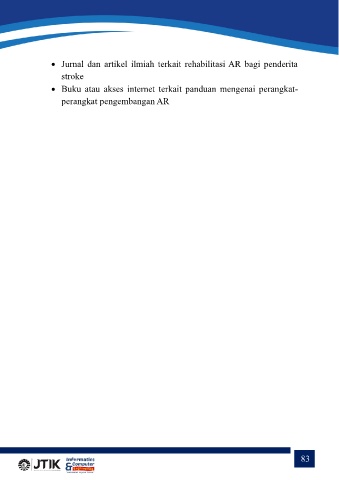 • Jurnal dan artikel ilmiah terkait rehabilitasi AR bagi penderita stroke • Buku atau akses internet terkait panduan mengenai perangkat- perangkat pengembangan AR 83
