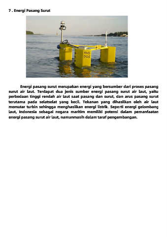 surut air laut. Terdapat dua jenis sumber energi pasang surut air laut, yaitu