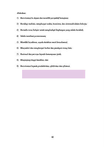 9) Berorientasi kepada produktivitas, efektivitas dan efisiensi.