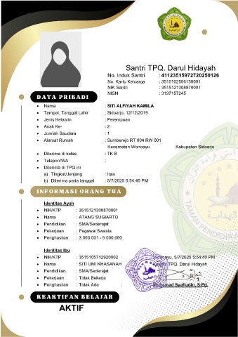 Nama : SITI UMI KHASANAH Kepala TPQ. Darul Hidayah
