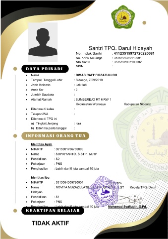 Tempat, Tanggal Lahir : Sidoarjo, 7/29/2010