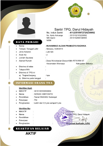 Tempat, Tanggal Lahir : Sidoarjo, 5/28/2014