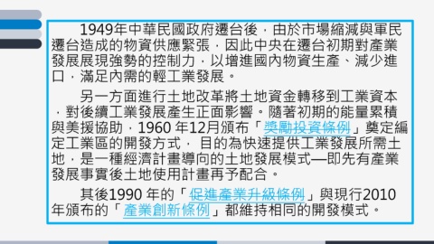 年頒布的「產業創新條例」都維持相同的開發模式。