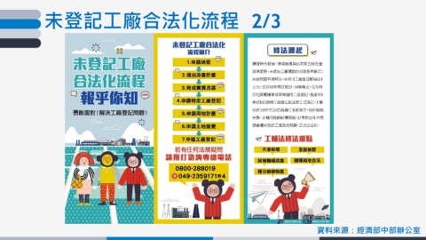 未登記工廠合法化流程 2/3 資料來源:經濟部中部辦公室