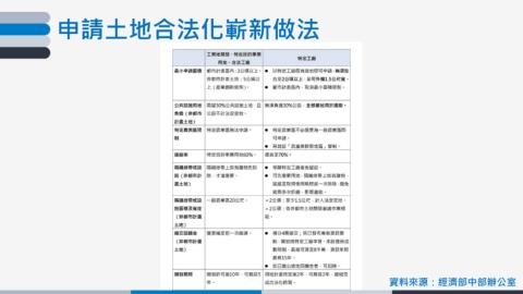 申請土地合法化嶄新做法 資料來源:經濟部中部辦公室