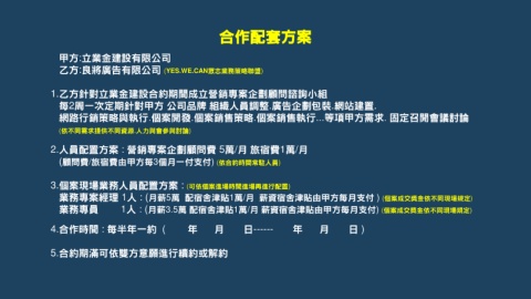 1.乙方針對立業金建設合約期間成立營銷專案企劃顧問諮詢小組