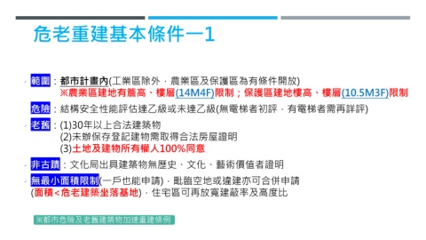 • 無最小面積限制(一戶也能申請),毗臨空地或違建亦可合併申請