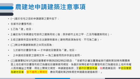 • (三)營建署92年5月28日營署都字第0920029923號函:「按都市計畫法臺灣省施行細則第30條有關農業