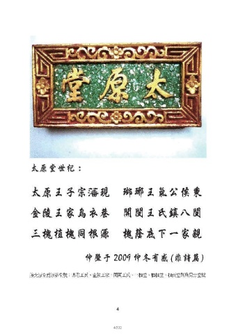 Page 5 - 王氏族譜(同安珩厝馬巷渡台東蓮公族系)2019年立撰