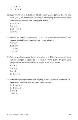 12. Suatu model kubus terbuat dari kawat dengan ukuran panjang (x + 5) cm,