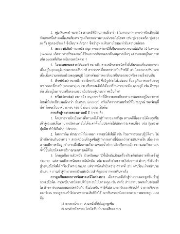 2. ฟูม(Fume) หมายถึง สารเคมีที่มีอนุภาคเล็กกว่า 1 ไมครอน (micron) หรือเทียบได้