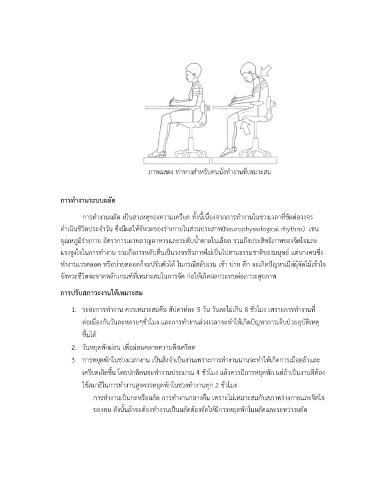 1. ระยะการท างาน ควรเหมาะสมคือ สัปดาห์ละ 5 วัน วันละไม่เกิน 8 ชั่วโมง เพราะการท างานที่