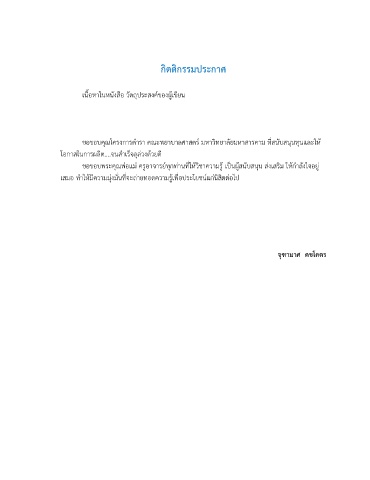 ขอขอบพระคุณพ่อแม่ ครูอาจารย์ทุกท่านที่ให้วิชาความรู้ เป็นผู้สนับสนุน ส่งเสริม ให้ก าลังใจอยู่