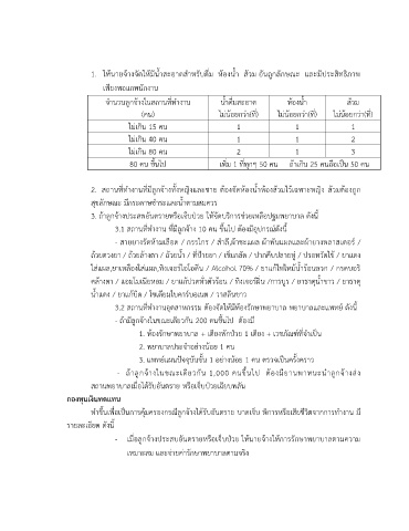 1. ให้นายจ้างจัดให้มีน้ าสะอาดส าหรับดื่ม ห้องน้ า ส้วม อันถูกลักษณะ และมีประสิทธิภาพ