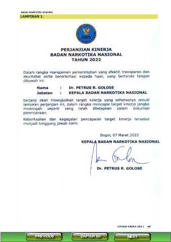 BADAN NARKOTIKA NASIONAL LAMPIRAN 1. PERJANJIAN KINERJA KEPALA BNN TAHUN 2022 LAPORAN KINERJA 2022 | xvi