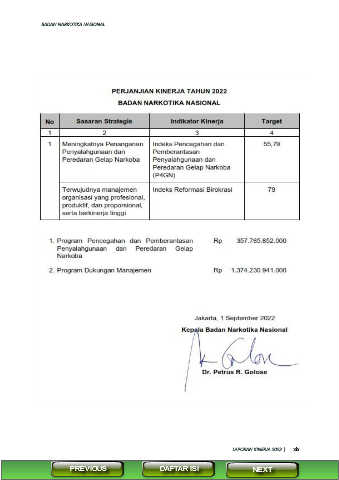 BADAN NARKOTIKA NASIONAL LAPORAN KINERJA 2022 | xix