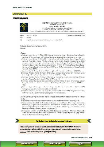 melaksanakan reformasi hukum dengan memperoleh Indeks Reformasi Hukum