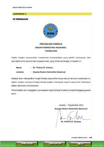 BADAN NARKOTIKA NASIONAL LAMPIRAN 2. PK PERUBAHAN LAPORAN KINERJA 2022 | xviii