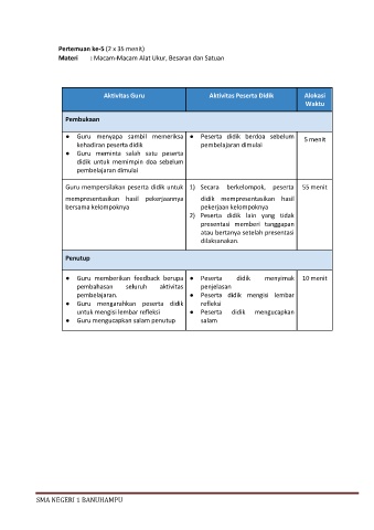 Aktivitas Guru Aktivitas Peserta Didik Alokasi