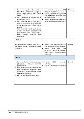 ● Guru memberikan feedback berupa ● Peserta didik menyimak 5 menit