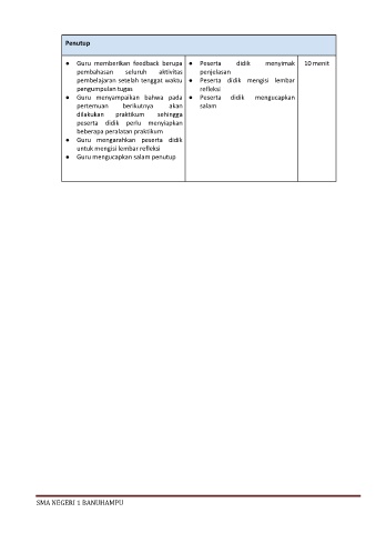 ● Guru memberikan feedback berupa ● Peserta didik menyimak 10 menit