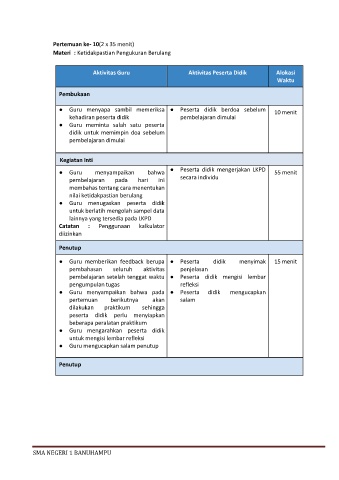 ● Guru menyapa sambil memeriksa ● Peserta didik berdoa sebelum 10 menit