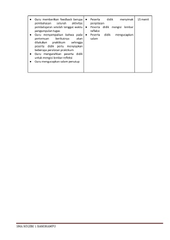 ● Guru memberikan feedback berupa ● Peserta didik menyimak 15 menit