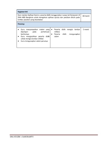 ● Guru menyampaikan materi yang ● Peserta didik mengisi lembar 5 menit