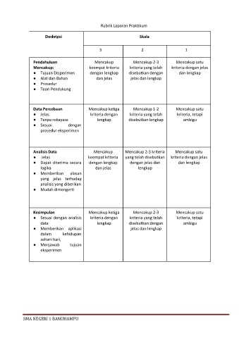 Rubrik Laporan Praktikum