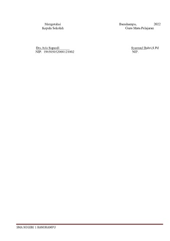 Mengetahui Banuhampu, 2022 Kepala Sekolah Guru Mata Pelajaran Drs.Aris Supardi Syamsul Bahri,S.Pd NIP. 196505052000121002 NIP. SMA NEGERI 1 BANUHAMPU