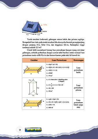 Tenda tersebut berbentuk gabungan antara balok dan prisma segitiga.