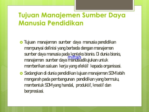 Sedangkan di dunia pendidikan tujuan manajemen SDM lebih