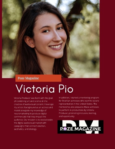 Victoria Producer was born with the goal In addition, I started a mentoring program