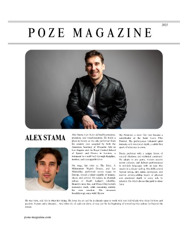 ALEX STAMA precision, and transformation. He holds a semi-finalist at the Saint Louis Film