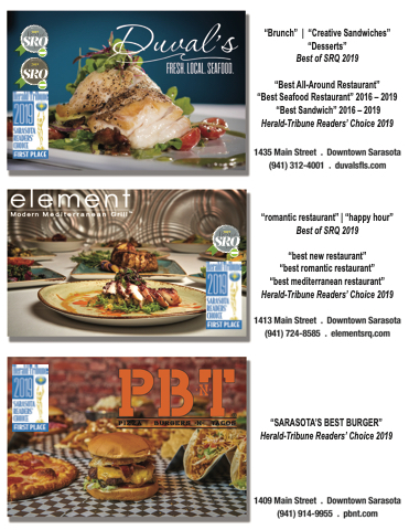 “Best All-Around Restaurant” “Best Seafood Restaurant” 2016 – 2019 “Best Sandwich” 2016 – 2019 Herald-Tribune Readers’ Choice 2019