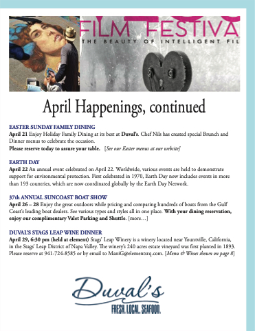 April 21 Enjoy Holiday Family Dining at its best at Duval’s. Chef Nils has created special Brunch and Dinner menus to celebrate the occasion.