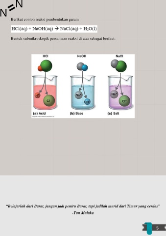 N N Berikut contoh reaksi pembentukan garam Bentuk submikroskopik persamaan reaksi di atas sebagai berikut: “Belajarlah dari Barat, jangan jadi peniru Barat, tapi jadilah murid dari Timur yang cerdas” -Tan Malaka 5
