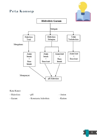 Peta Konsep Kata Kunci: - Hidrolisis - pH - Anion - Garam - Konstanta hidrolisis - Kation 1