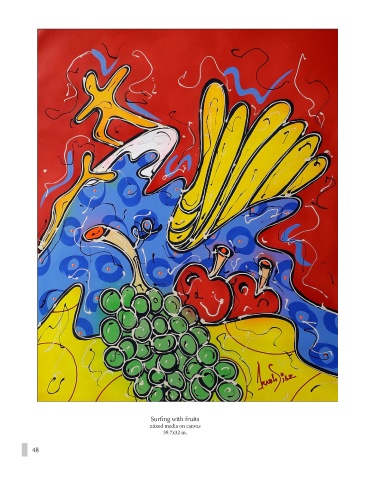 Surfing with fruits mixed media on canvas 39.7x32 in. 48