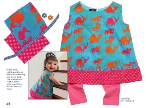 What small child won’t look adorable climbing the steps or in the playground in this dress with marching elephants and lions. Leggings not included 28