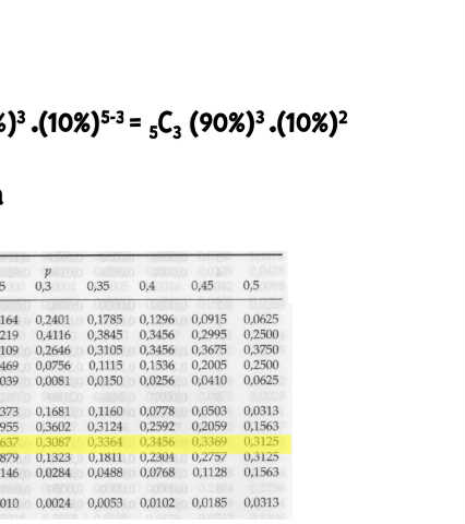 p = 90% dan q = 1 – 90% = 10% untuk x = 3 dan n = 5 maka P(X = 3) = b(3; 5; 90%) = C (90%) .(10%) 5-3 = C (90%) .(10%) 2 3 3 5 3 5 3 untuk y = 5 – 3 = 2 dan n = 5 maka P(Y = 2) = b(2; 5; 10%) = 0,0729