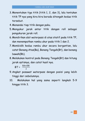 dan menempatkan rambu ukur pada titik 1 dan 2.