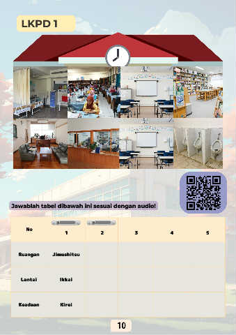 LKPD 1 Jawablah tabel dibawah ini sesuai dengan audio! No 1 2 3 4 5 Ruangan Jimushitsu Lantai Ikkai Keadaan Kirei 10