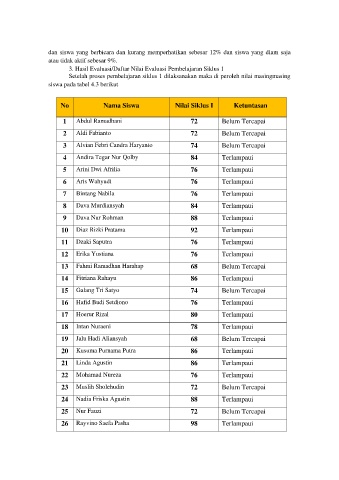 No Nama Siswa Nilai Siklus I Ketuntasan