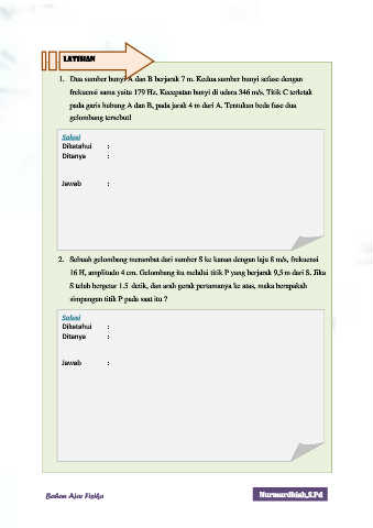 1. Dua sumber bunyi A dan B berjarak 7 m. Kedua sumber bunyi sefase dengan