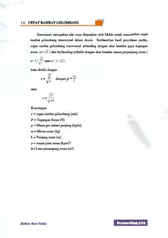 senar (v ̴ ) dan berbanding terbalik dengan akar kuadrat massa perpanjang senar (