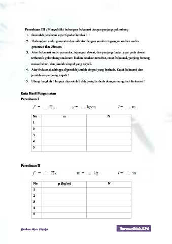 Percobaan III : Menyelidiki hubungan frekuensi dengan panjang gelombang