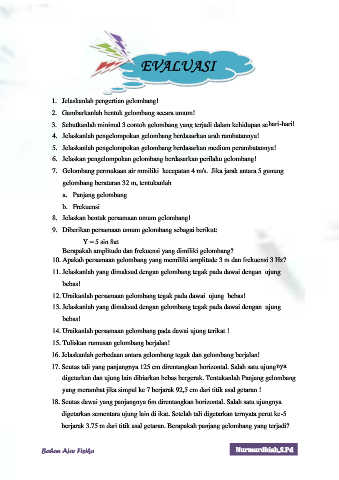 9. Diberikan persamaan umum gelombang sebagai berikut:
