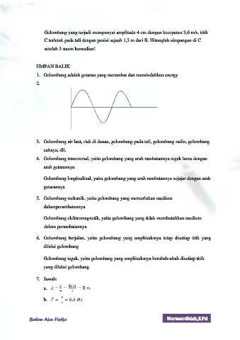 Gelombang yang terjadi mempunyai amplitude 4 cm dengan kecepatan 3,6 m/s. titik